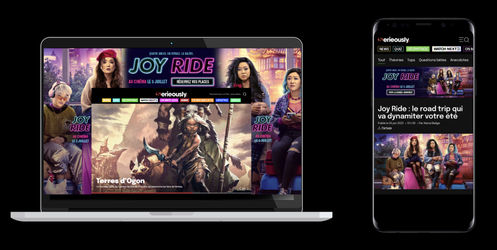 À l’occasion de la sortie en salles de la comédie Joy Ride, c’est une campagne 360° qui a été proposée au client avec une activation de notre concept vidéo “Mic Drop” où nous avons posé des questions piège à l’audience, un soutien édito, et une campagne display.