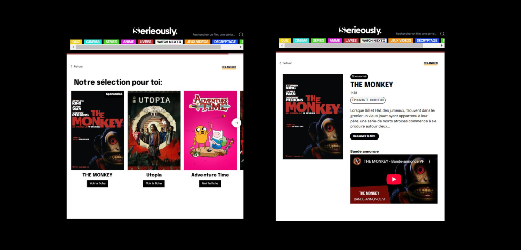 Pour faire monter la tension avant l’arrivée de The Monkey au cinéma, nous avons activé un dispositif mêlant display, brand content et éditorial.