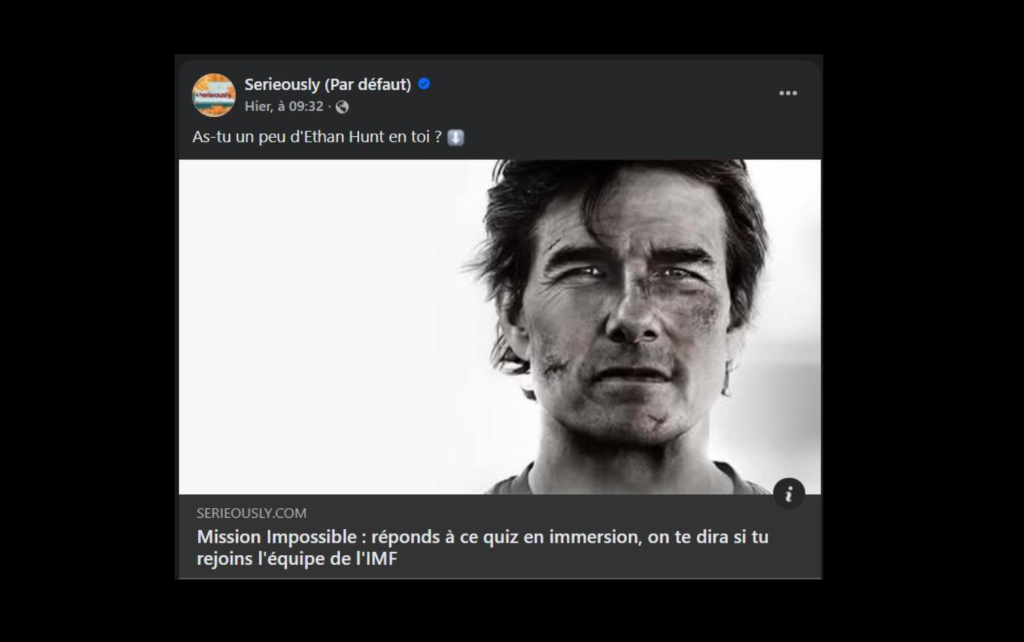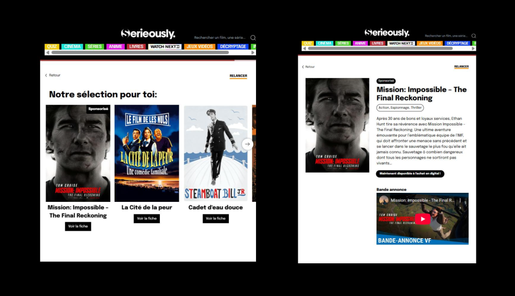 Enfin, nous avons assuré un accompagnement éditorial avec un article dédié, amplifié par une présence en Header pendant 3 jours, pour installer le film au cœur de l’actualité pop culture.